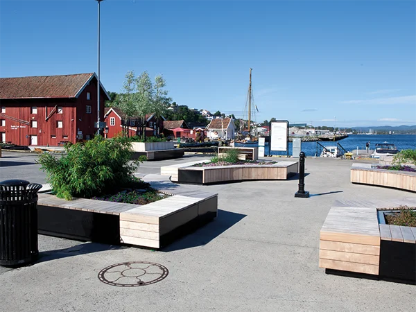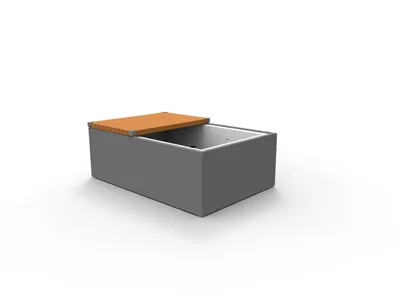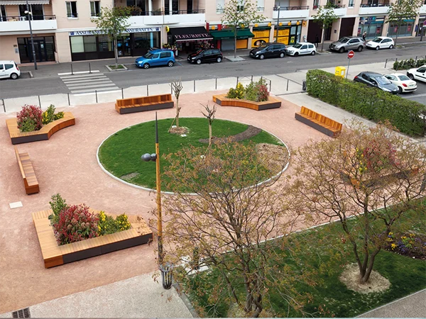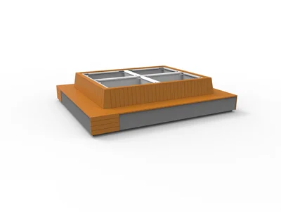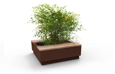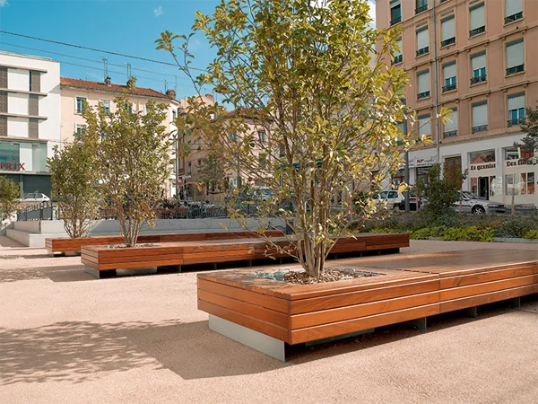 Le mobilier est personnalisable par une alliance de matières, de couleurs et de palettes végétales. Ces jardins se combinent pour créer un aménagement personnalisé en adéquation avec son environnement. L’assise est matérialisée par un ruban de bois enveloppant le socle surélevé. L’espace jardinable est composé de bacs de fleurissement.