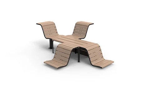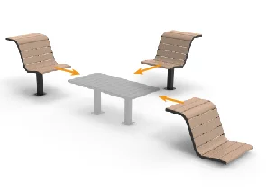 Greffon existe également de manière autonome en associant un ou plusieurs tabourets Greffon aux élements dossiers et assises pour la création d'un mobilier urbain moderne et confortable.