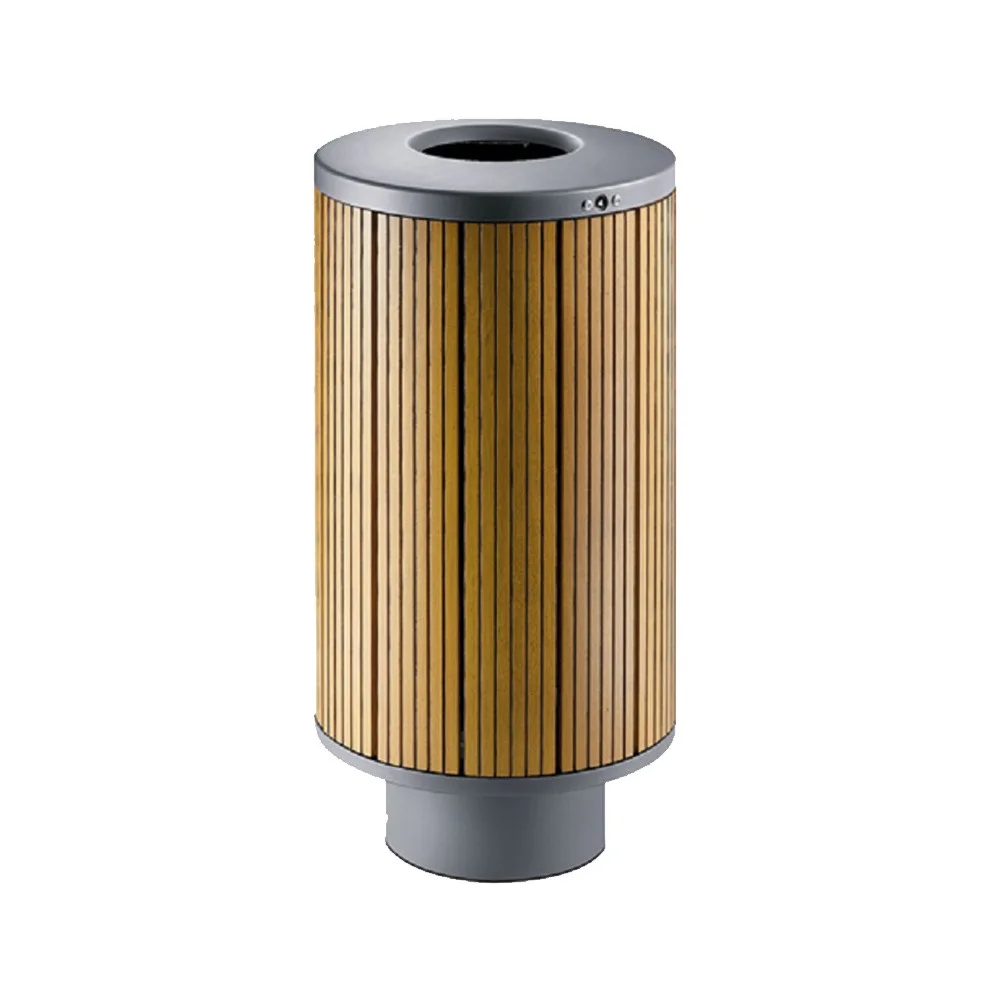 Er integriert sich speziell in Grünanlagen, deren Optik durch die Holzverkleidung und seine runde Form aufgewertet wird.
