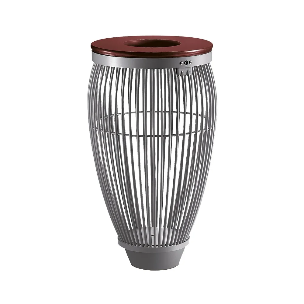 Dieser Abfallbehälter fällt durch sein modernes Design auf. Dank seiner Fertigung aus Stahldraht ist er sehr solide, präsentiert aber dennoch eine optische Leichtigkeit. Seine Transparenz ermöglicht eine perfekte Integrierung in seine Umgebung und erfüllt die Anforderungen des Vigipirate-Plans. Der Behälter lässt sich hervorragend mit den Bänken mit oder ohne Rückenlehne und den Sesseln der gleichen Kollektion kombinieren.