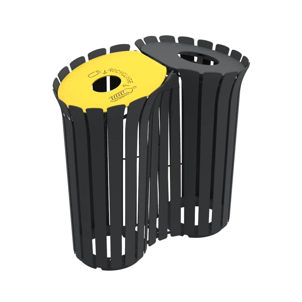 Son couvercle incliné empêche le dépôt de déchets sauvages. Sa conception lui permet d’accueillir un grand volume de déchets et de s’inscrire dans une démarche de tri sélectif.