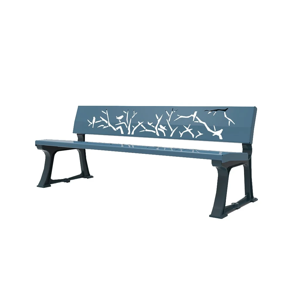 Die Bank Natur verbindet Gusseisen und Stahl und bietet damit eine zeitgenössische Version der Bank Comfort 2. Der Sitz ist aus Metall und wurde mit dem aus dem Material ausgeschnittenen Motiv Natur verziert. Das schlichte und edle Design der Produktpalette Natur integriert sich in jede Art von Umfeld.