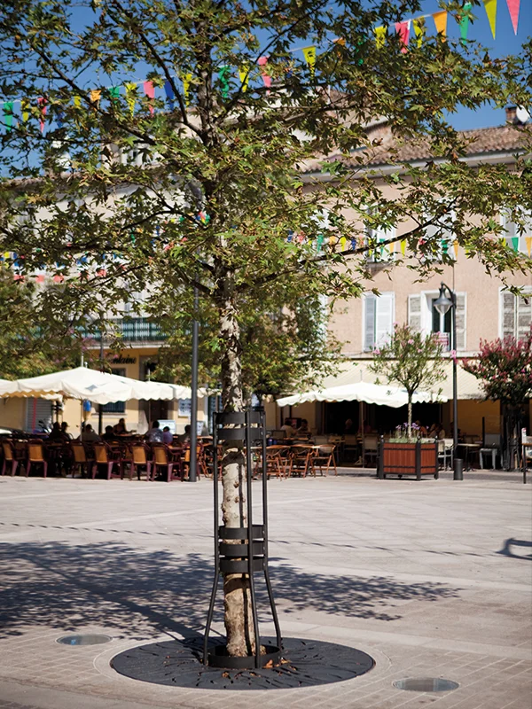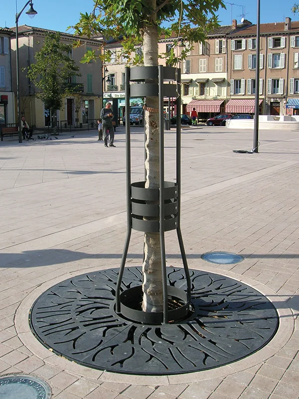 Dieses Baumkorsett hält den Baum aufrecht und schützt ihn vor Aggressionen und Stößen. Es wurde speziell entworfen, um sich ästhetisch in alle urbanen Anlagen einzufügen. Es passt zu allen Modellen der Baumschutzgitter von Sineu Graff.