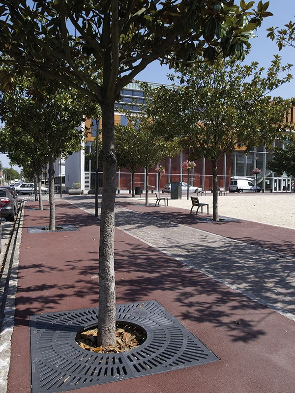 Das geometrische und schlanke Design des Baumschutzgitters Diagonal MeierGuss verschafft Ihren Anlagen einen zeitgemäßen Look. Das Gusseisen verleiht dem Modell Widerstandkraft und garantiert eine hohe Lebensdauer.