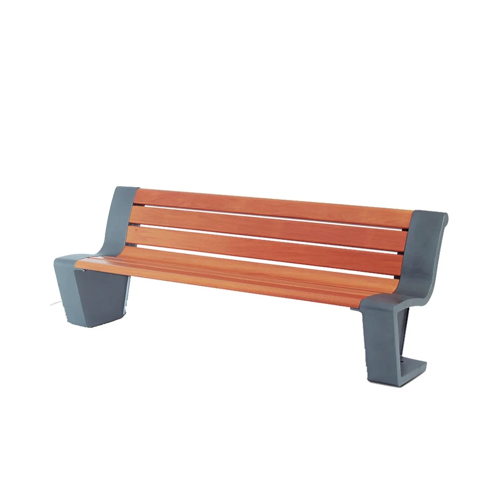 Die Bank Metropolis zeichnet sich durch ein sehr zeitgemäßes Design aus. Der grafische Look dieses Möbelstücks entsteht durch die Zusammensetzung der Holzplanken, die den Sitz und die Rückenlehne bilden, als auch die einzigartige Form des gusseisernen Untergestells.