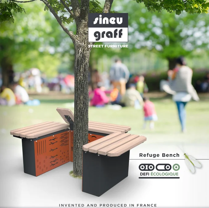 > The Refuge® Bench is thus an urban seat that is a combination of participatory science, encouragement for biodiversity and a way of promotingthe environment.