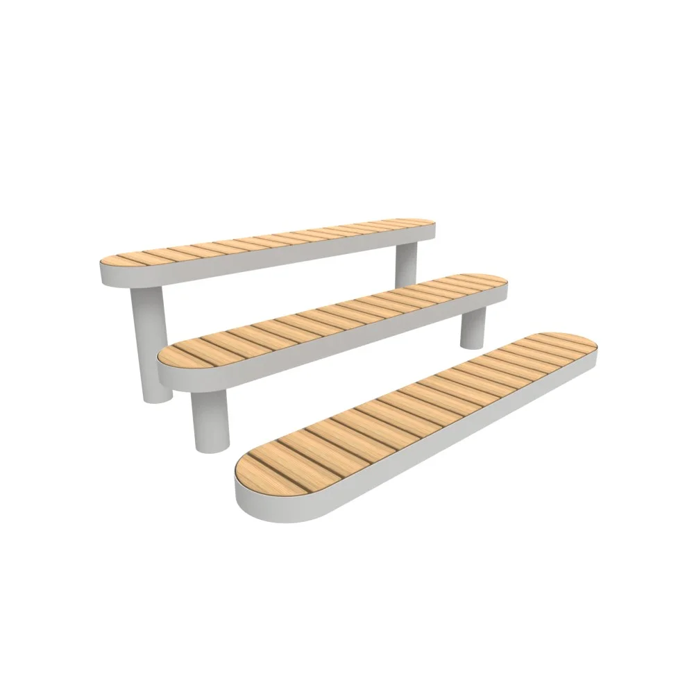 Arobase Bois est une version tempérée de la version Arobase acier. Son dessin dynamique associé à la douceur et au confort du bois en font une version climatique apaisée. Au résultat, un mobilier adouci, plus zen encore, qui invite au partage et à la détente.