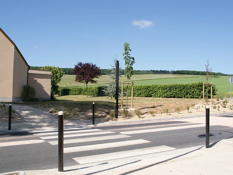 Ce potelet en acier se caractérise par son dessin contemporain et sa lisibilité. Ces mobiliers sont discrets et performants. 3 formes de chapeaux sont possibles : plat, boule ou pointu.