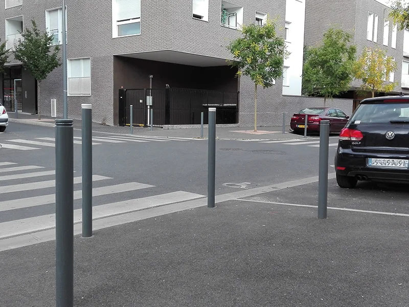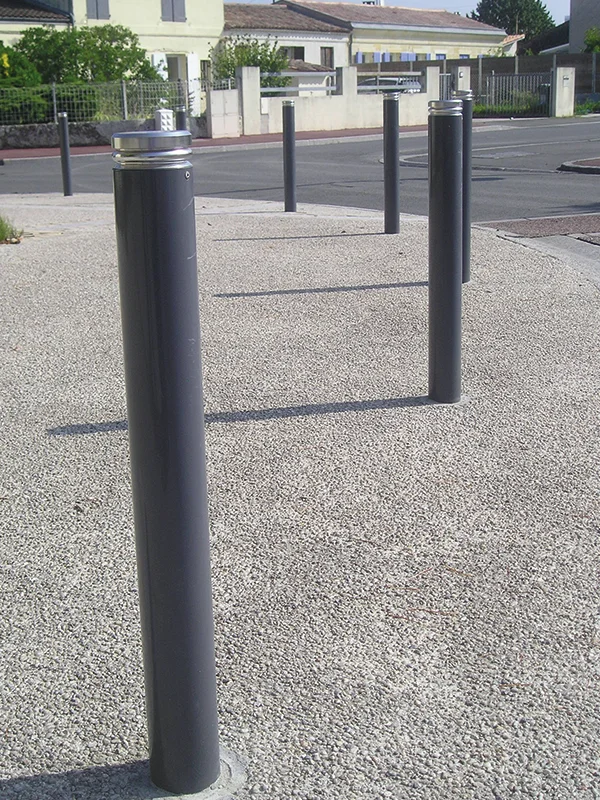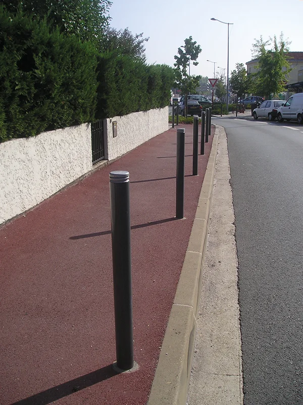 Ce potelet en acier se caractérise par son dessin contemporain et sa lisibilité. Ces mobiliers sont discrets et performants. 3 formes de chapeaux sont possibles : plat, boule ou pointu.