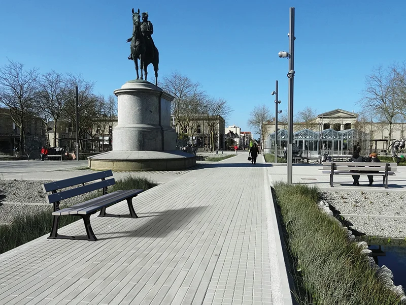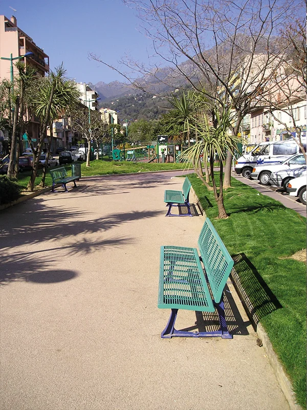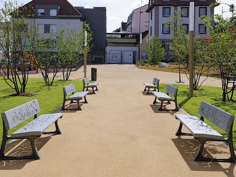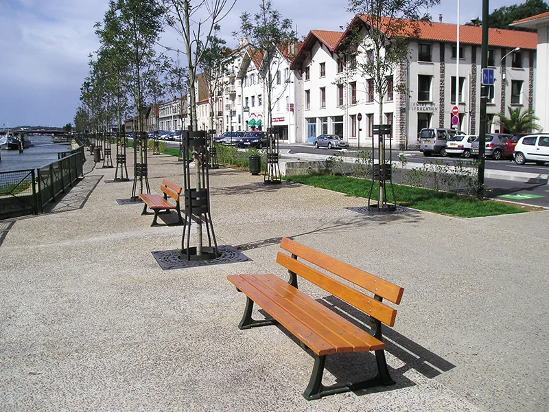 Le banc Saint Denis fait partie intégrante de l’espace public d’aujourd’hui. Son dessin classique permet une parfaite intégration dans tous types architecturaux des communes. Son piètement en fonte offre une résistance et une longévité inédits. La transparence de la trame métallique du mobilier joue harmonieusement avec la lumière et lui permet une présence discrète et raffinée dans son environnement.
