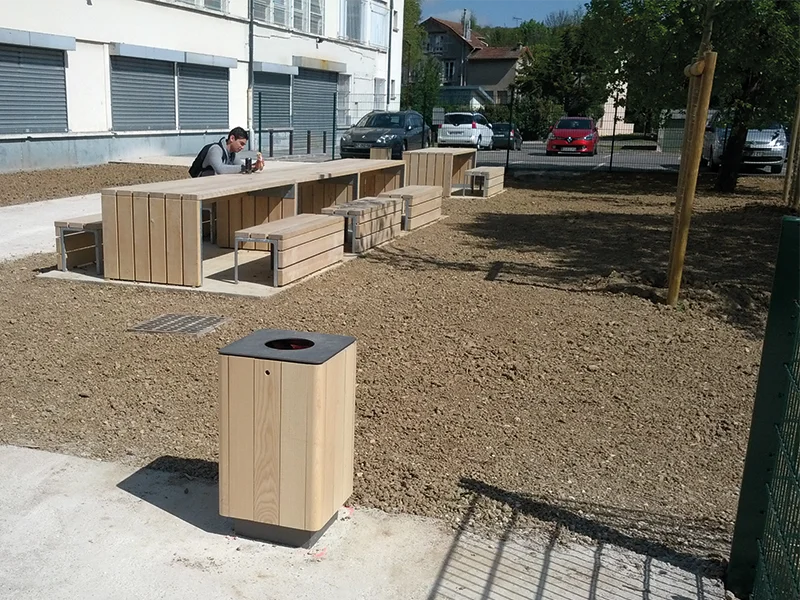 La corbeille Oblongue est le mobilier idéal de propreté de vos espaces contraints grâce à sa faible profondeur. Elle s’insère facilement dans un cheminement piéton. Son parement de bois lui confère un aspect naturel, élégant et convivial et lui permet une intégration valorisante, particulièrement dans les espaces verts.