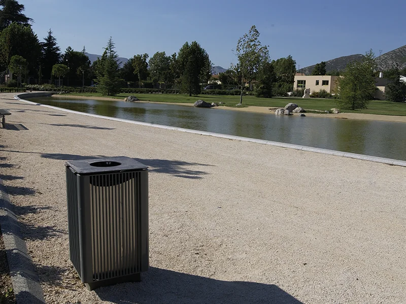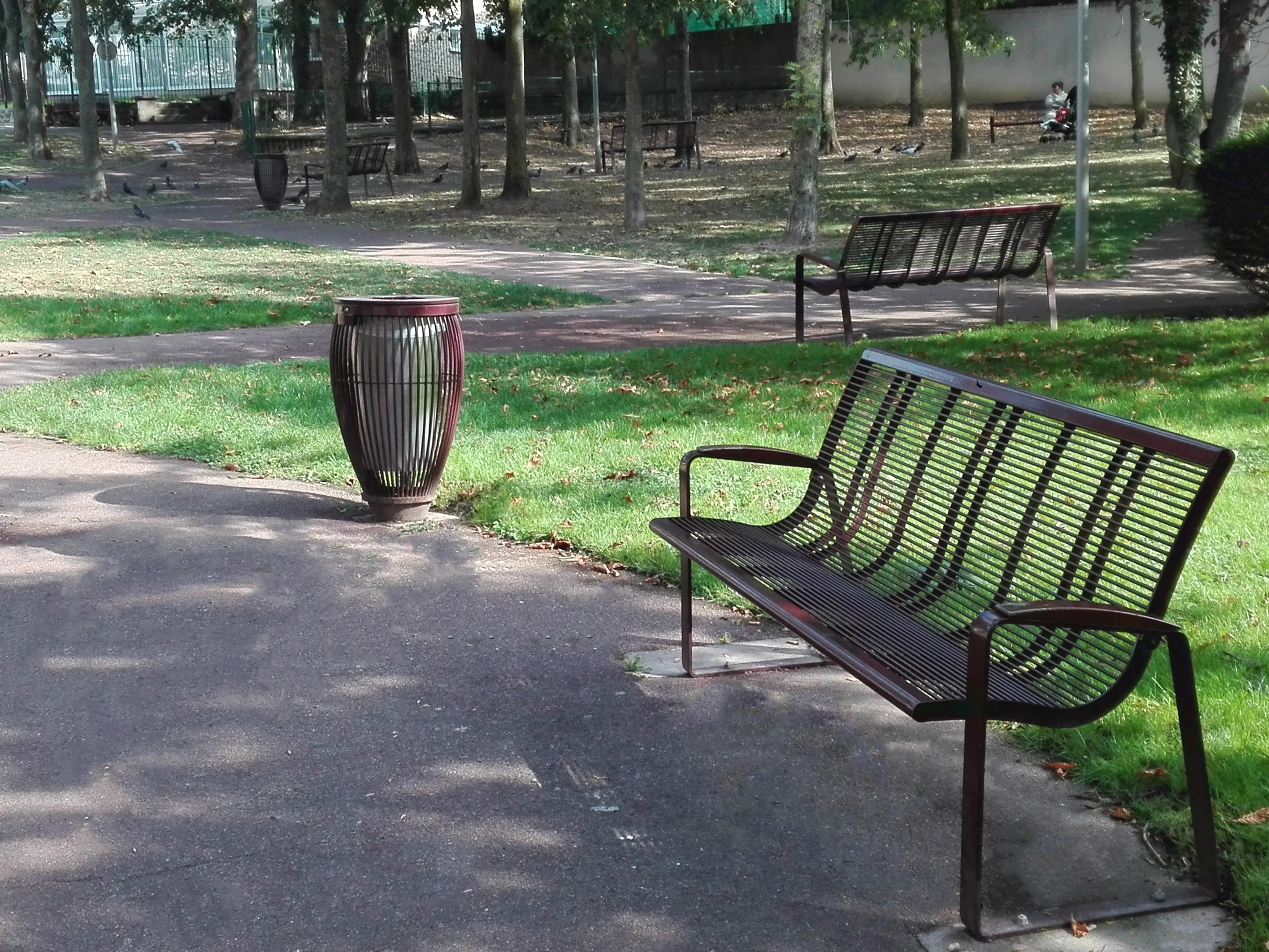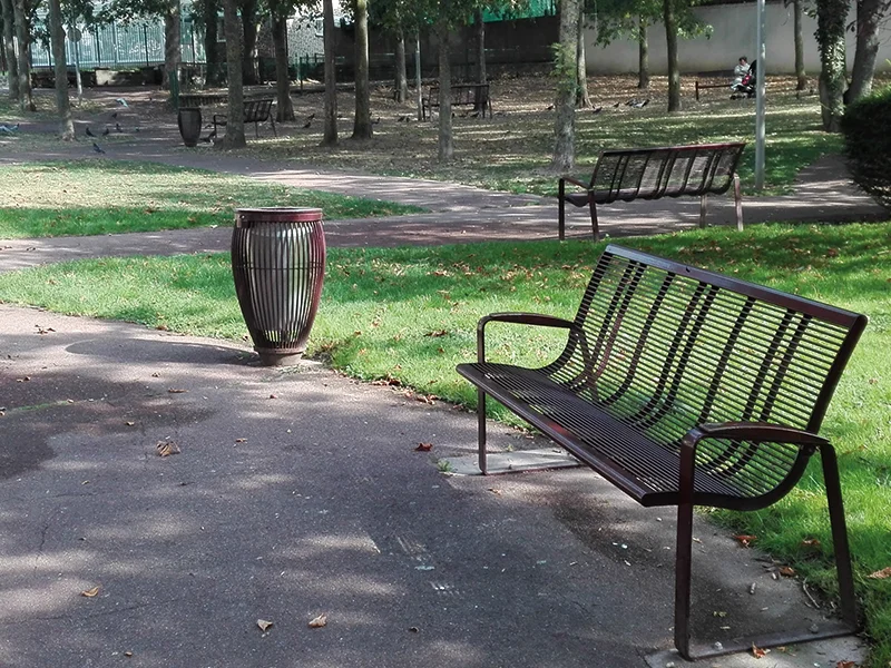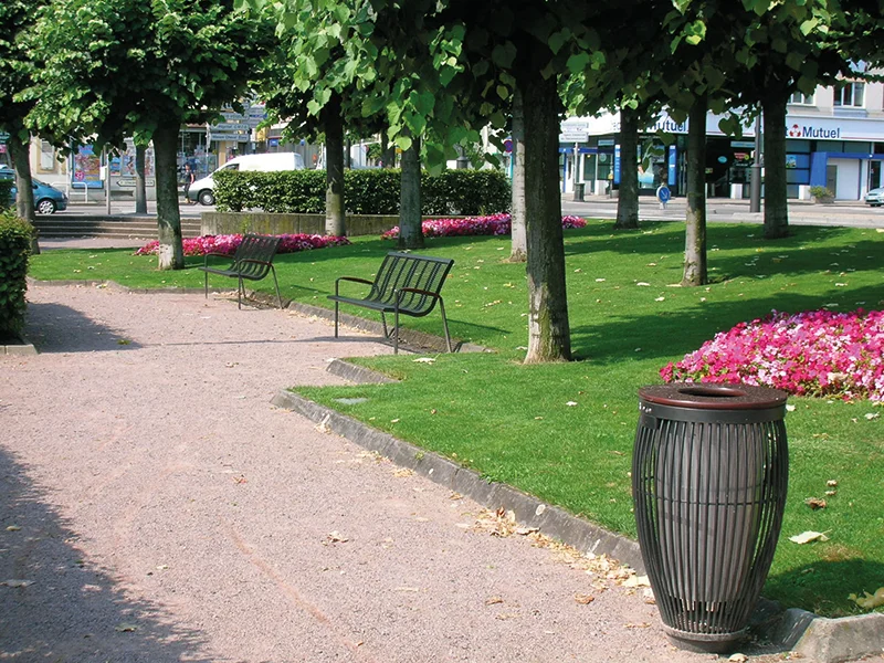 La corbeille s’associe parfaitement avec les bancs, banquettes et fauteuils de la même collection.