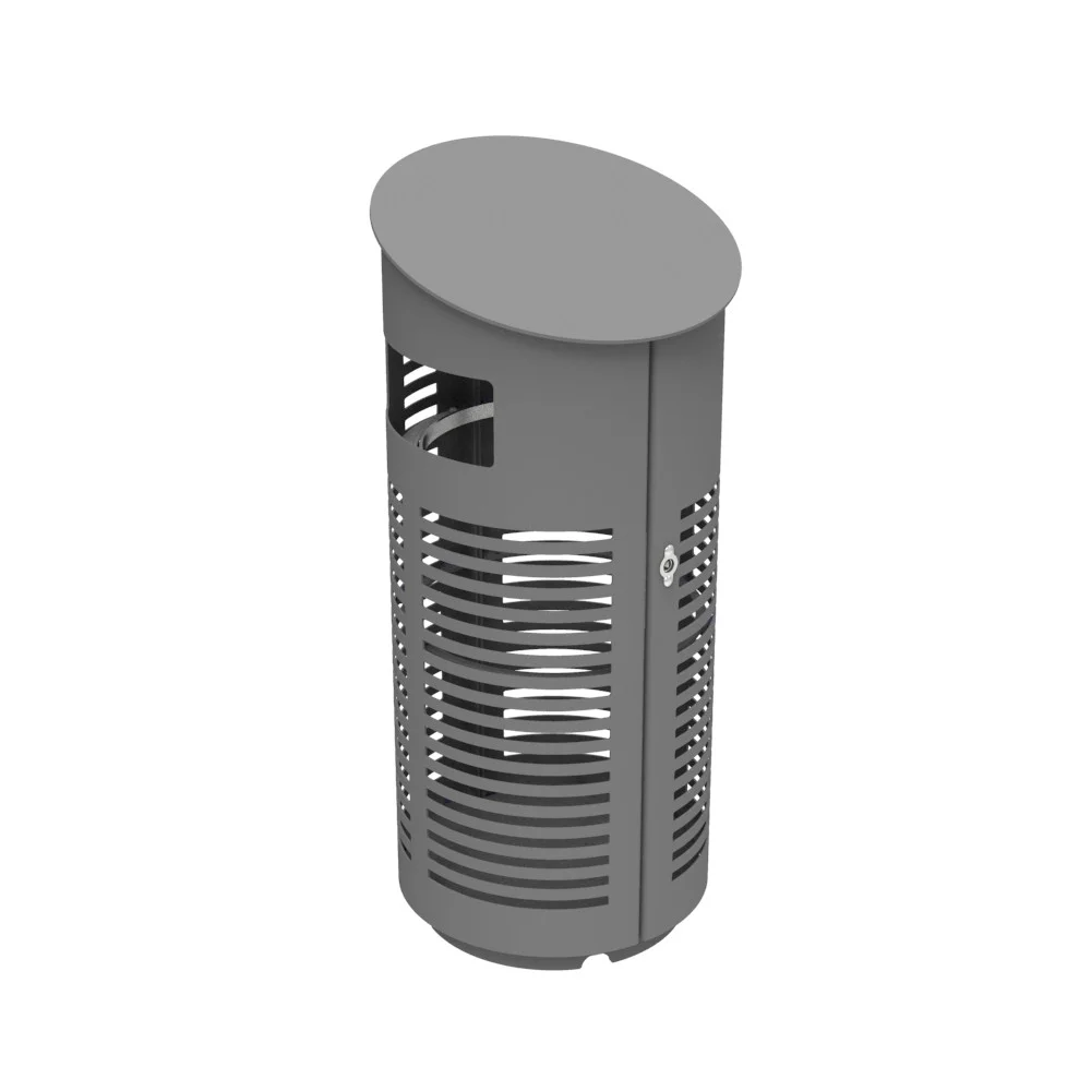 La corbeille de propreté Contemporaine – Plus se caractérise par son couvercle incliné. Ce dispositif empêche l’abandon de déchets sauvages. Les larges ouvertures latérales de cette corbeille favorisent l’introduction des déchets dans la corbeille. Les découpes permettent une intégration parfaite dans le paysage urbain tout en répondant aux exigences du plan vigipirate.