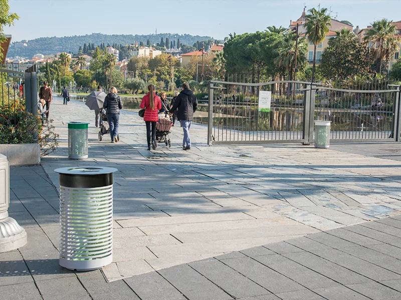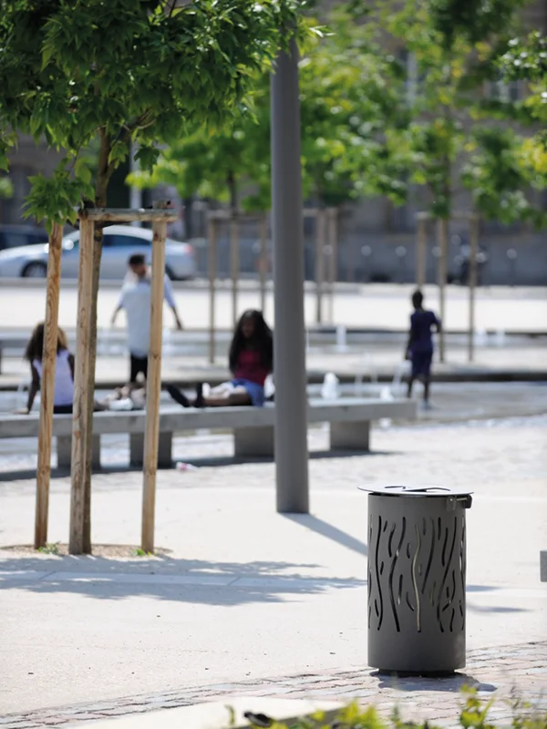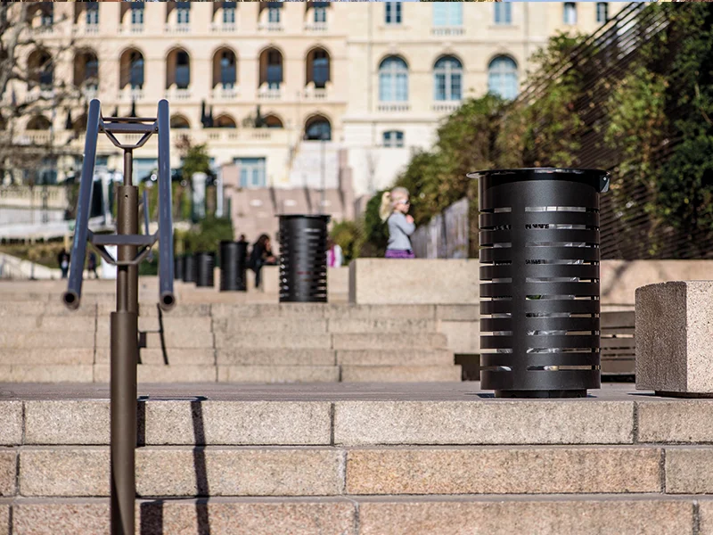 La corbeille de propreté Contemporaine – Demi-lune Classique se caractérise par son faible encombrement. Elle est parfaitement adaptée aux espaces restreints, cheminements piétons, … . Le corps de ce mobilier urbain propose un motif « classique », ajouré, sobre et contemporain. Son design permet une intégration parfaite dans le paysage urbain tout en répondant aux exigences du plan vigipirate.