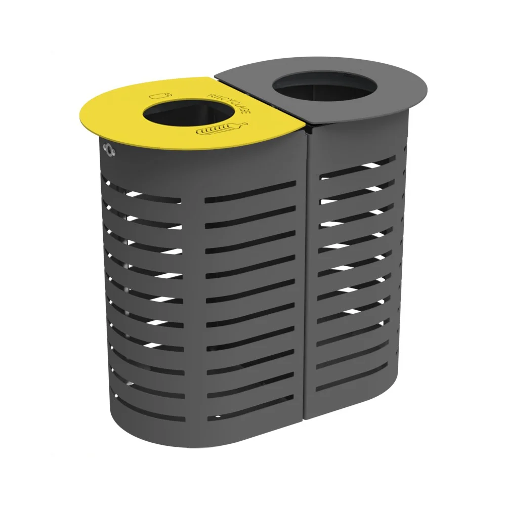 Elle accueille deux ouvertures pour faciliter l’introduction des déchets et inciter au tri sélectif. Des codes couleurs permettent d’identifier les différents types de déchets.