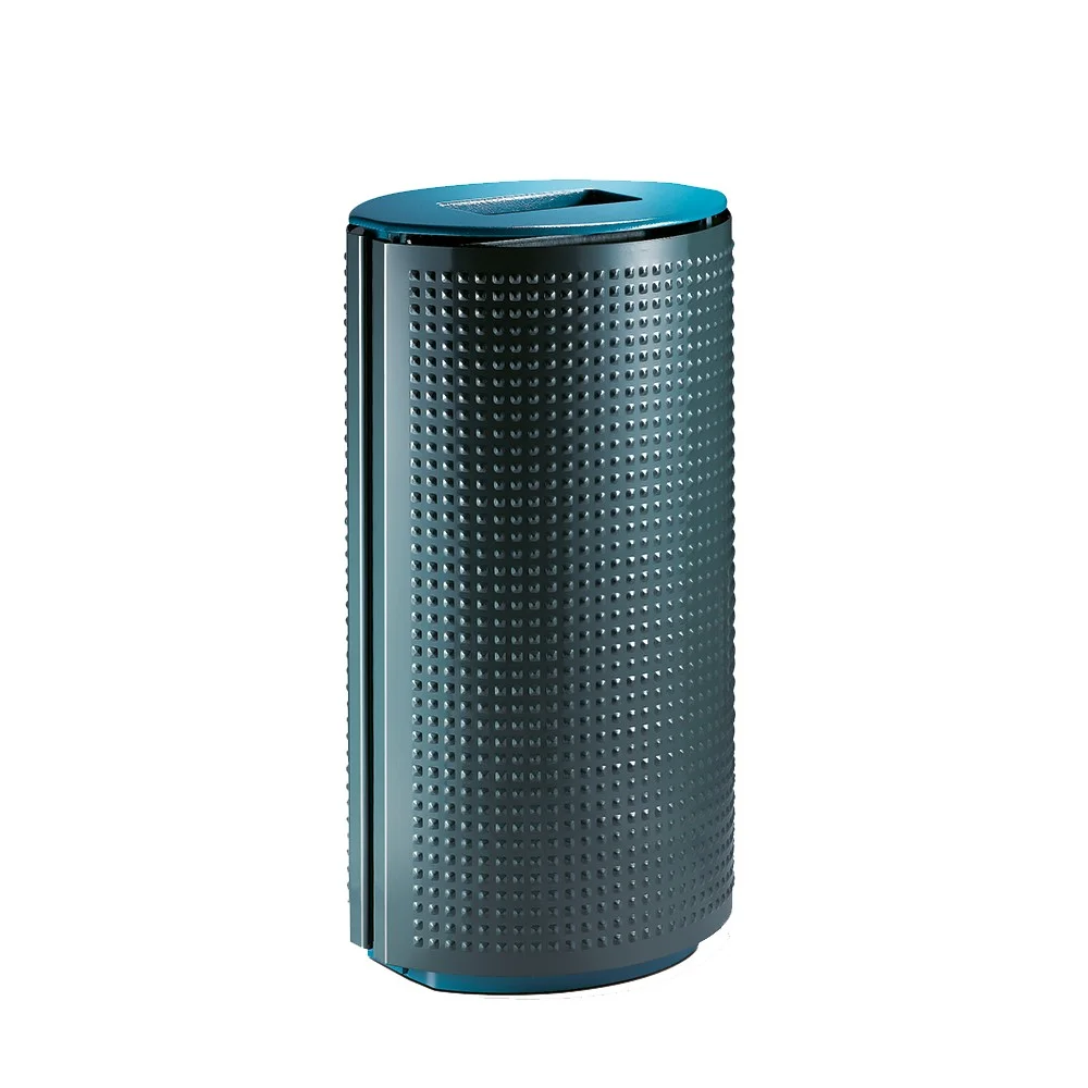 La tôle gaufrée en pointes de diamant apporte à cette corbeille élégance et solidité tout en dissuadant l’affichage sauvage et les tags. Sa grande contenance lui permet une intégration idéale dans les lieux publics à forte affluence.