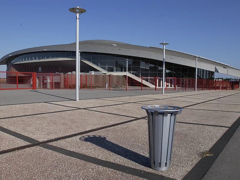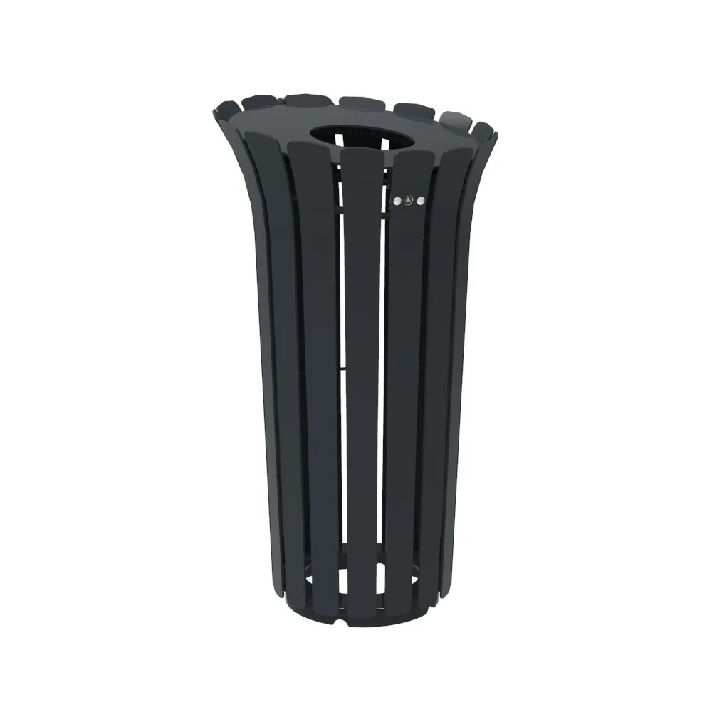 Son couvercle incliné empêche le dépôt de déchets sauvages. Sa large ouverture facilite l’introduction de déchets volumineux comme les sacs de restauration rapide ou les boîtes d’emballage de pizzas.