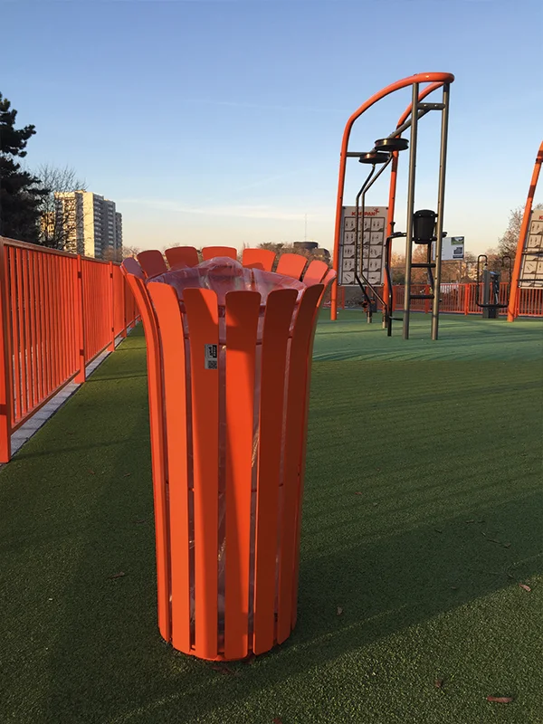 Le dessin d’inspiration végétale de la corbeille Tulipe Evolution lui confère une allure très moderne et élancée l’inscrivant également dans les espaces les plus urbains.