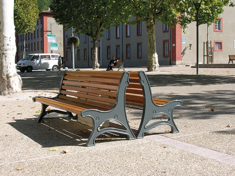 Le banc Expression fait partie de la famille du Centaure, modèle robuste et résistant par excellence. Son dessin intemporel lui permet de s’intégrer facilement à vos aménagements.
