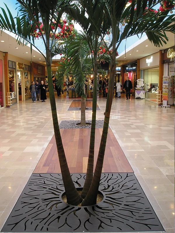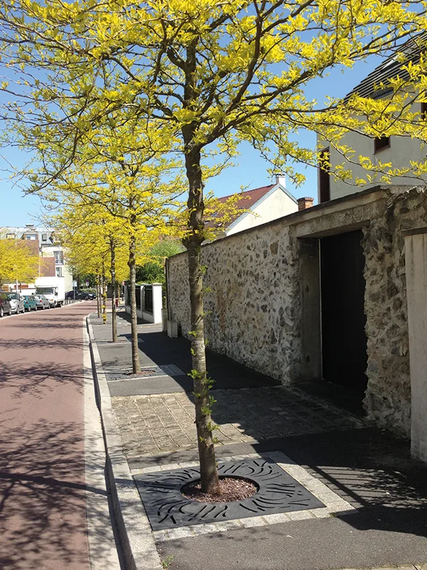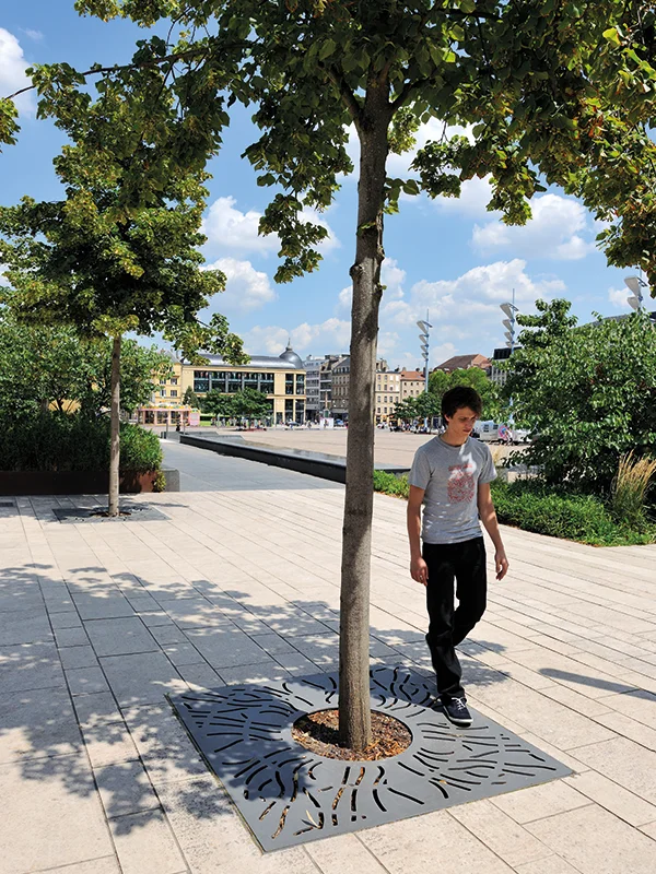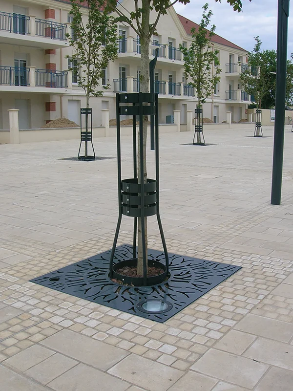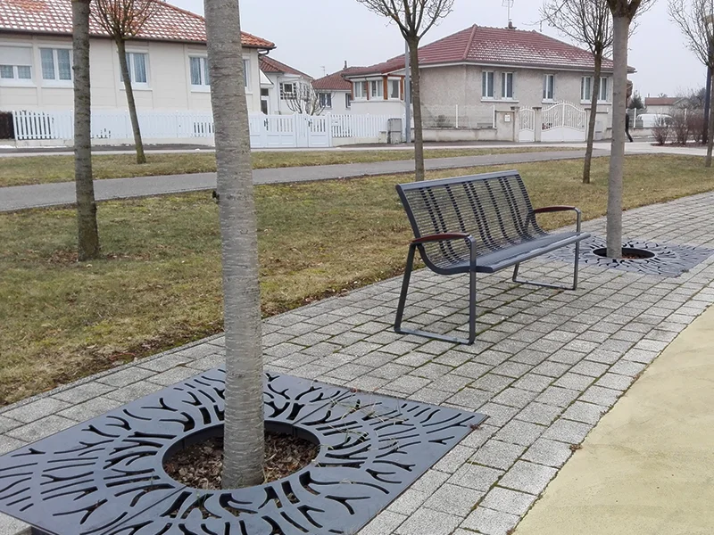 La grille d’arbre Racines rend hommage aux racines de l’arbre qu’elle protège.