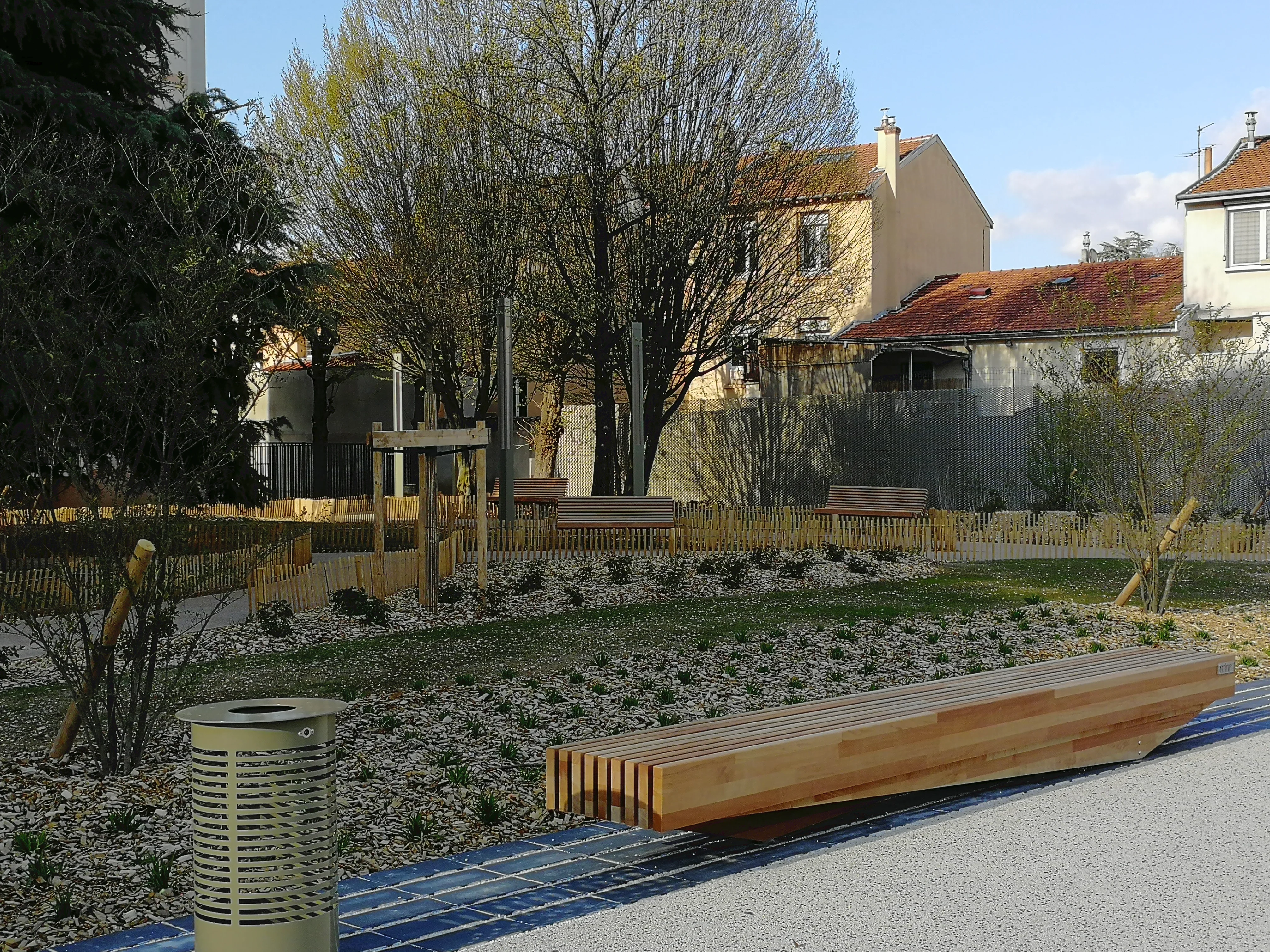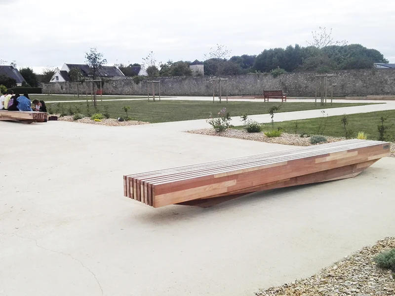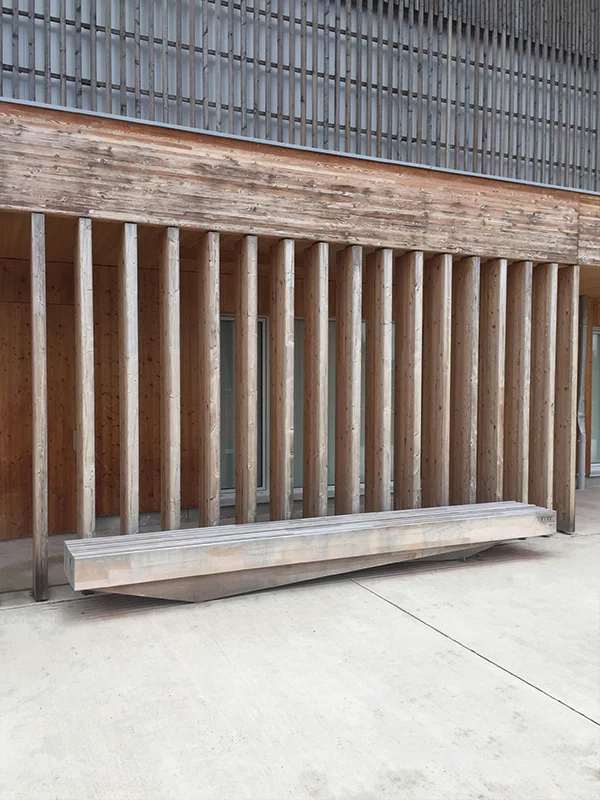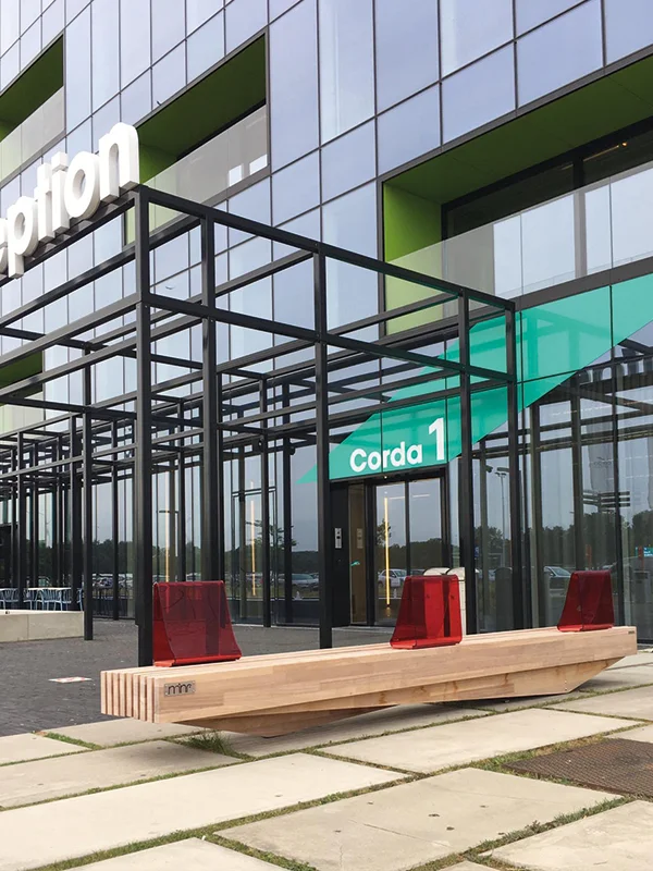 Le corps est constitué de 9 lattes dont 3 lattes descendent vers le sol pour former le piètement. Associé à l’assise, le piètement donne un aspect élancé et épuré à l’objet. Les dossiers coulissants ou fixes en matériau thermoplastique transparent confèrent originalité et légèreté à Nine.
