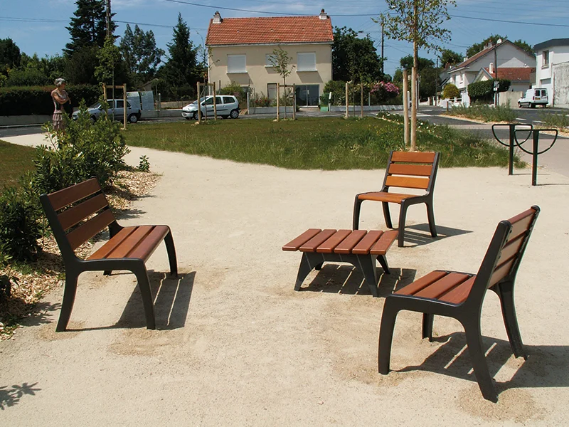 Le confort du banc Opéra est assuré par ses formes douces et par un piètement en fonte bien enraciné au sol. Sa silhouette intemporelle garantit sa discrétion dans des espaces denses et au contraire lui permet de s’imposer dans un aménagement plus minéral.
