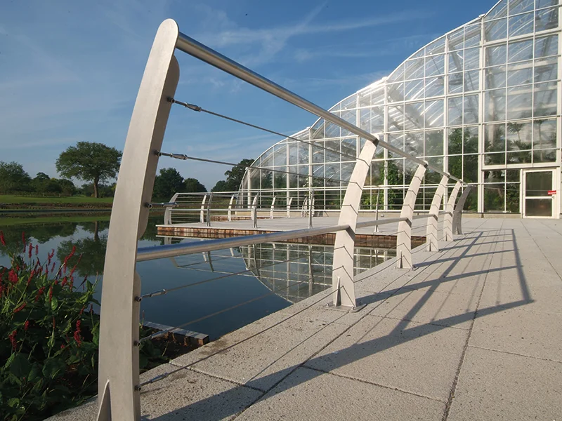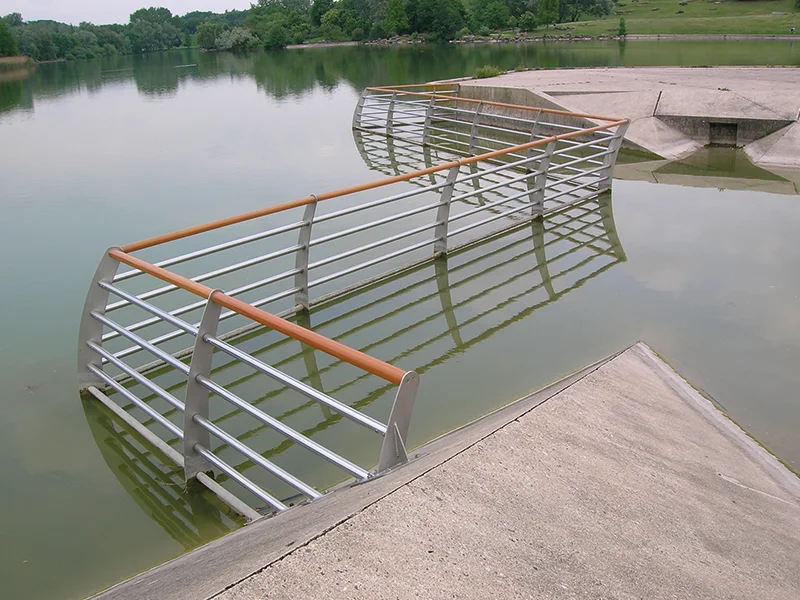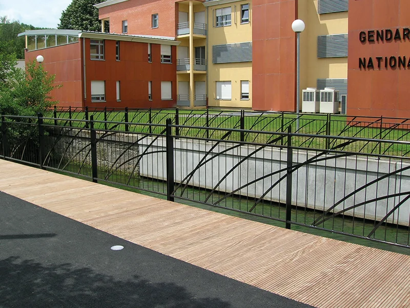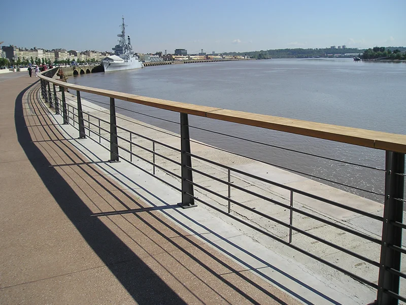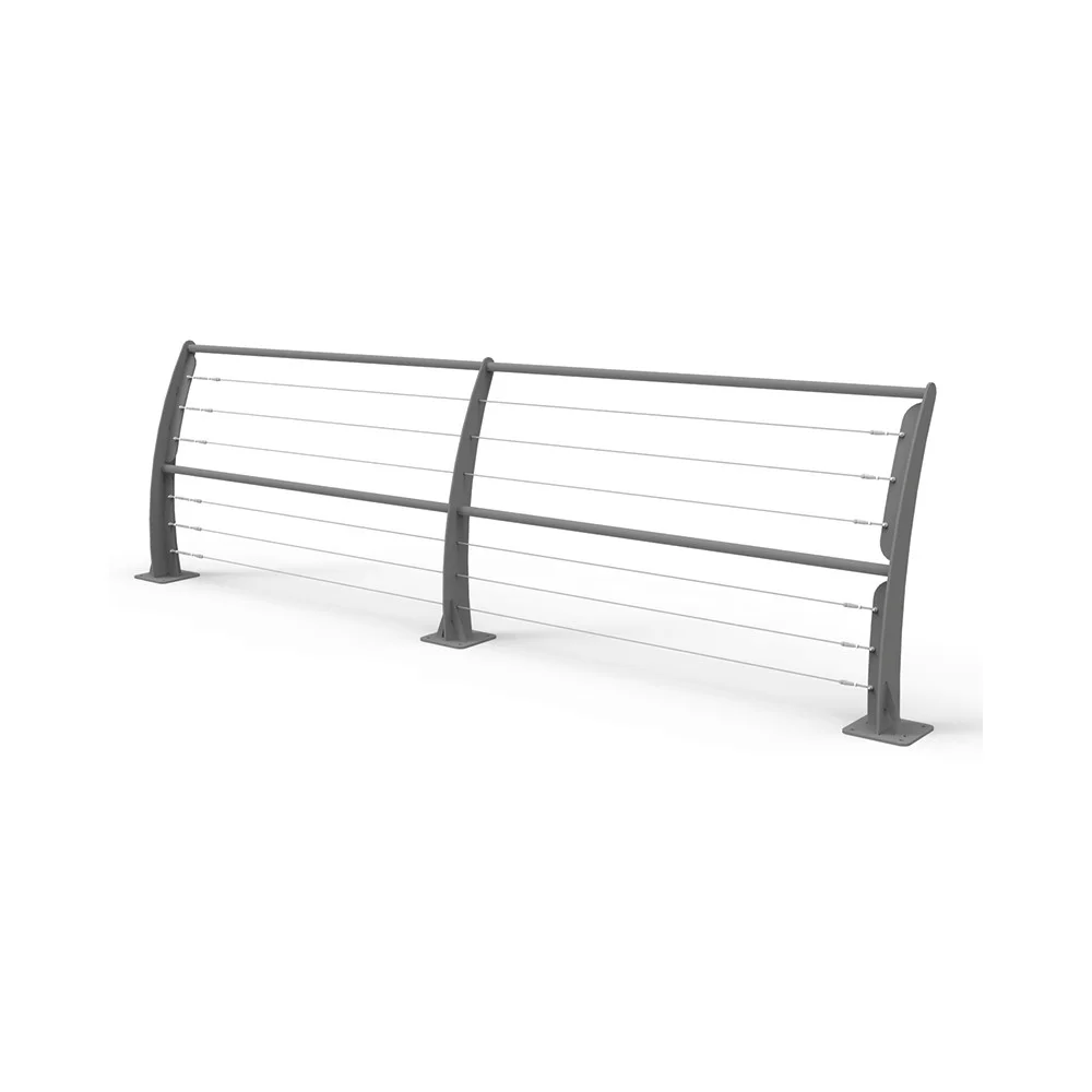 La rambarde permet de protéger l’usager et sécuriser les abords d’un cours d’eau ou d’un lieu surplombant. Elle est proposée avec des poteaux courbes et des lisses en acier zingué peint ou en inox, et selon les modèles des câbles en acier inoxydables.