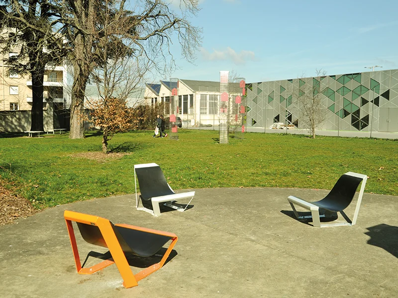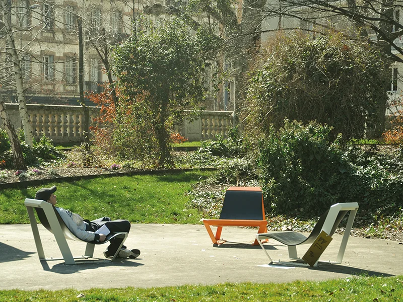 Le Rubber Chair associe une assise souple en caoutchouc renforcé et une structure en acier. Il se destine à l’espace public et offre un confort inédit en milieu urbain.