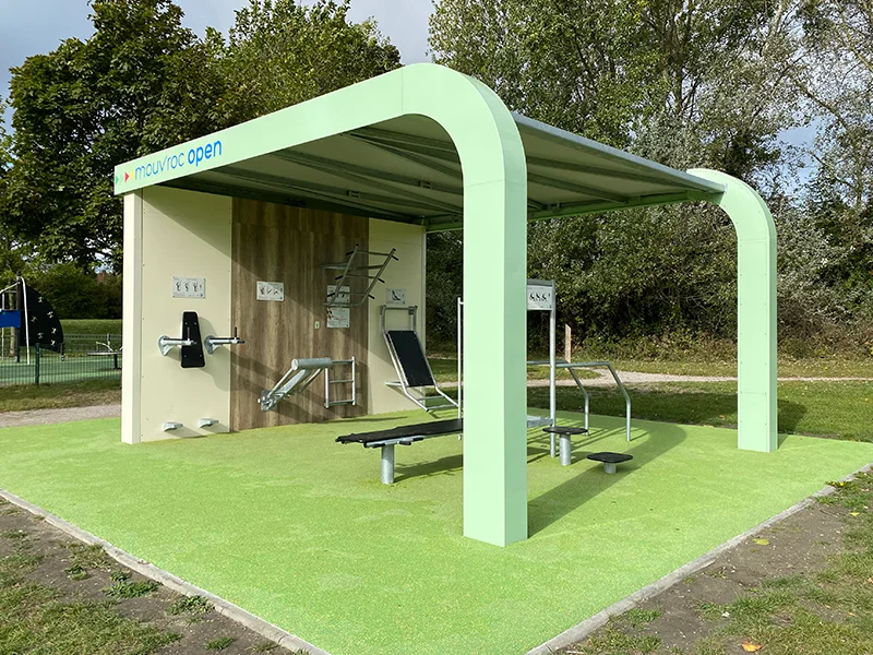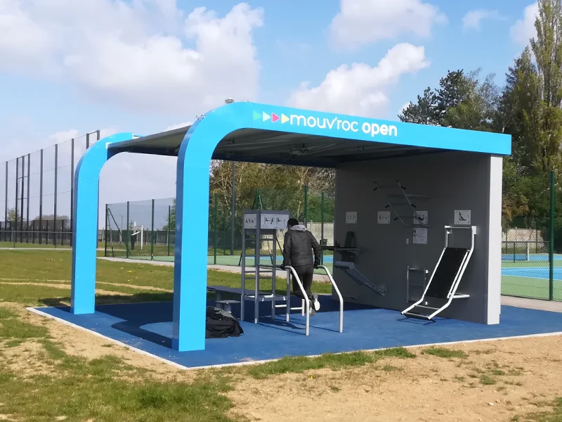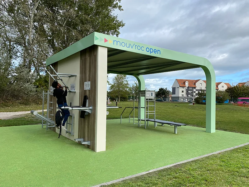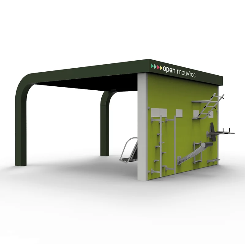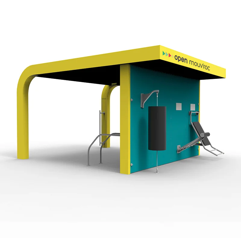 Sineu Graff a pensé l'Open Mouv’roc comme une salle de fitness ouverte pour offrir aux sportifs, aguerris ou occasionnels, un espace abrité pour faire les exercices de renforcement musculaire ou d’étirements.