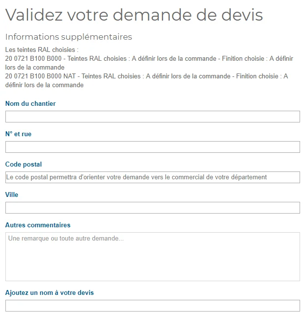 To be able to validate your request for quotation/order, fill in the required fields in the form that allows us to assign your request to the sales representative in your area.