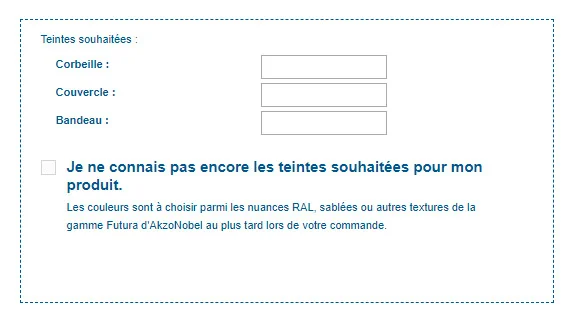 If you don't know them yet, you can check the box : "I don't know the desired shades for my product yet" but no order will be registered without colour information.
